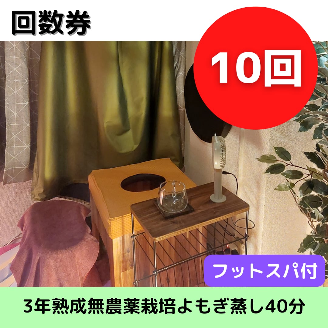 3年熟成無農薬栽培よもぎ蒸し40分(フットスパ付)通常¥4,000/1回の回数券。